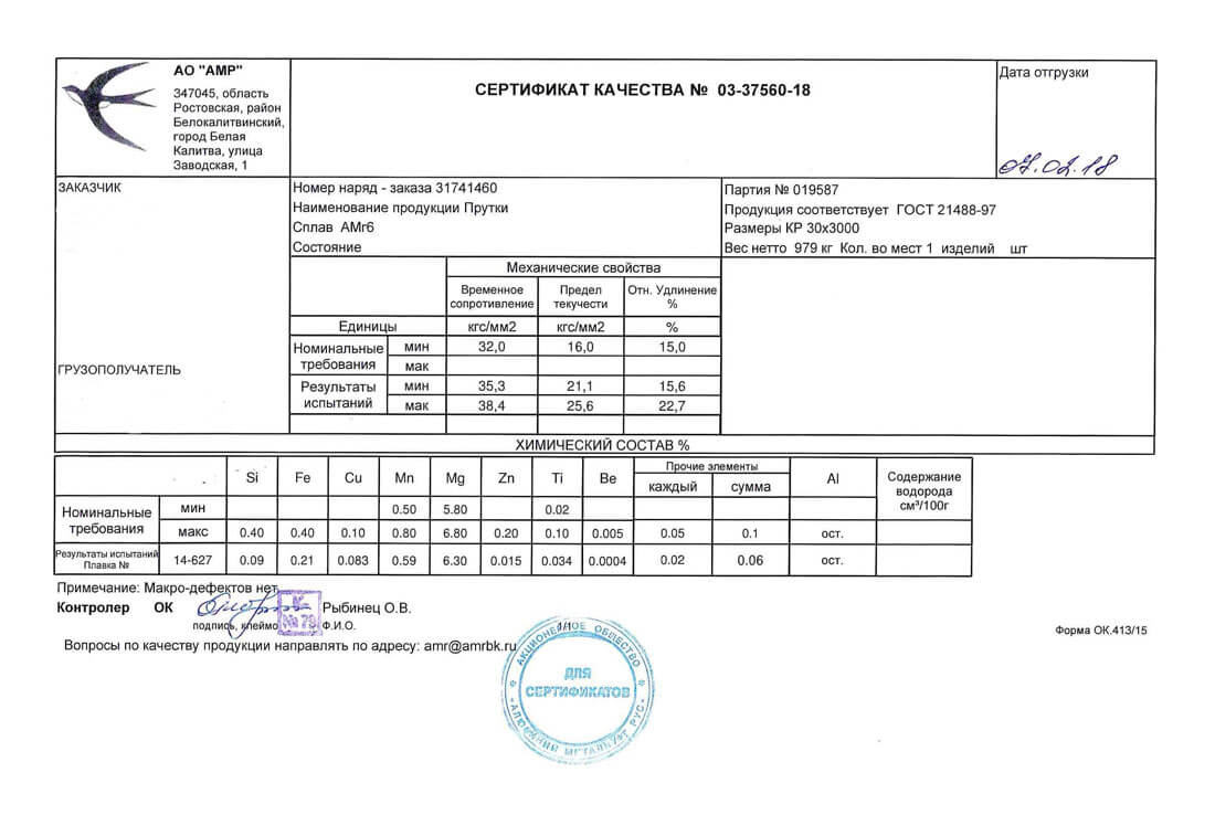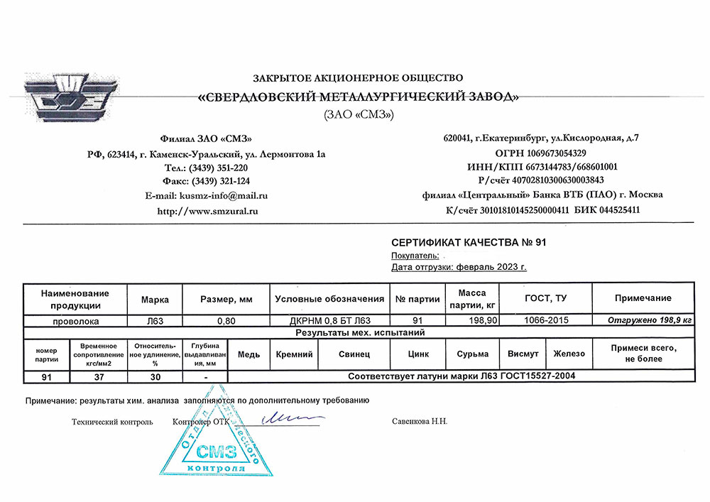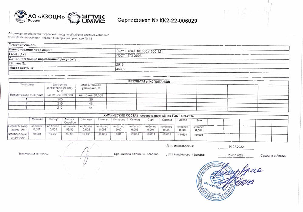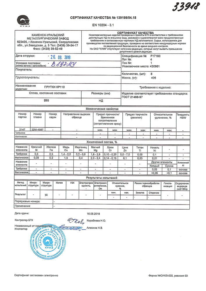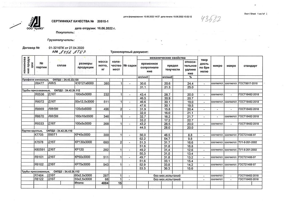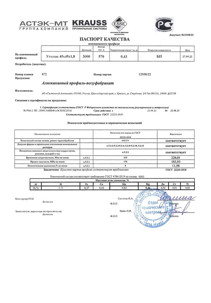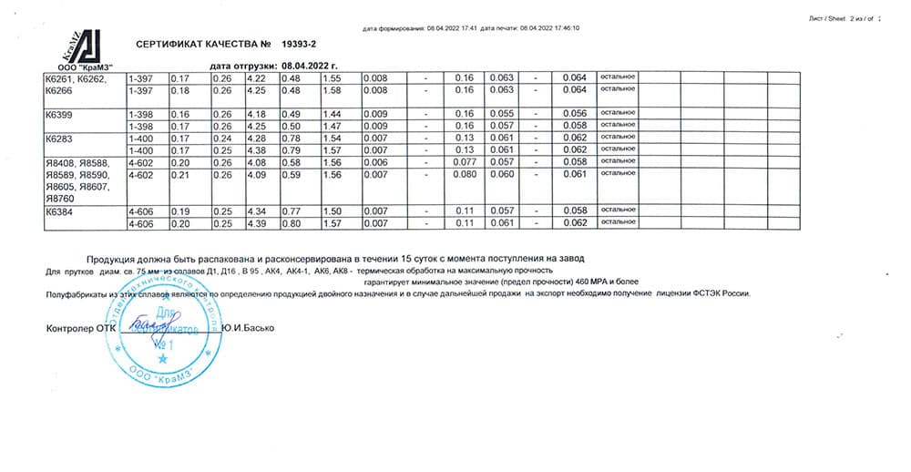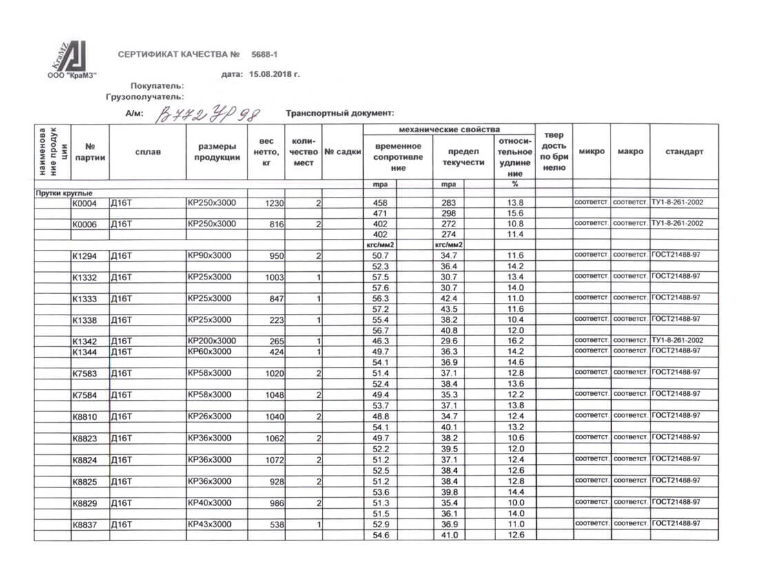 В этом разделе вы можете ознакомится с сертификатами качества на предлагаемый металлопрокат. Вся продукция соответствует регламентам прописанных в ГОСТах или ТУ. Если вы не нашли необходимый сертификат, отправьте нам запрос, любым удобным способом.