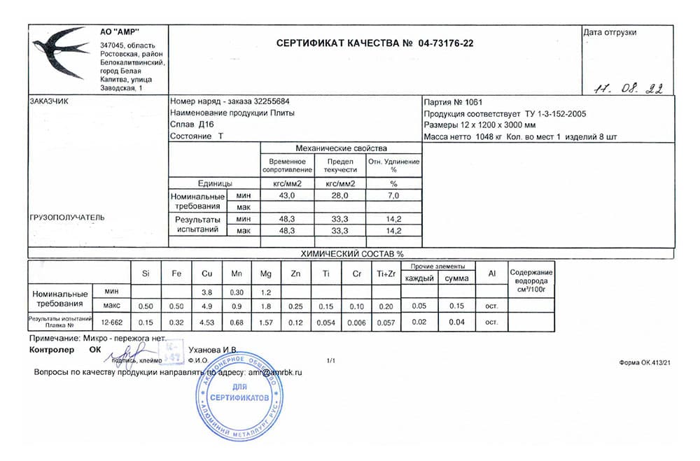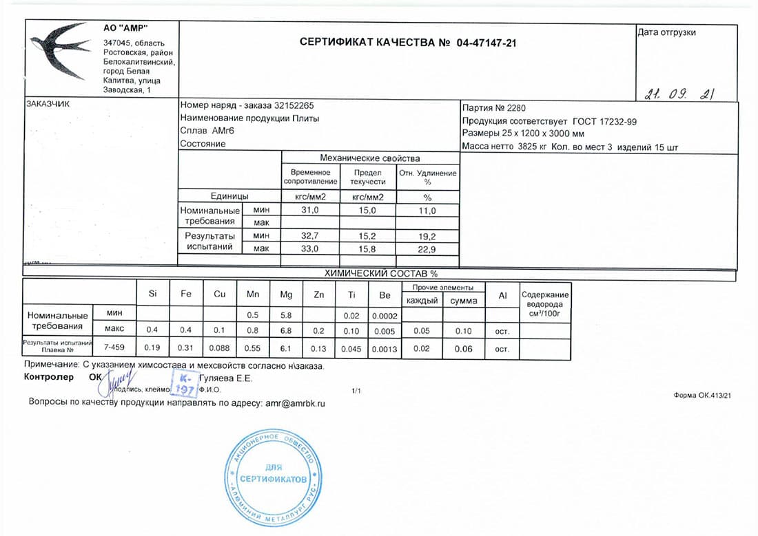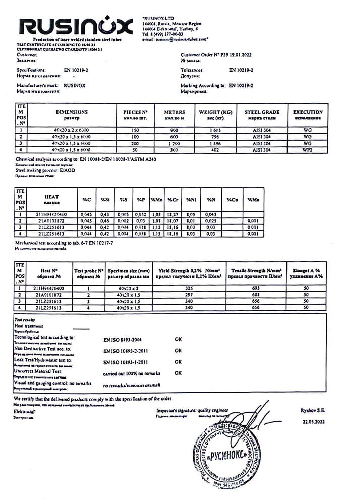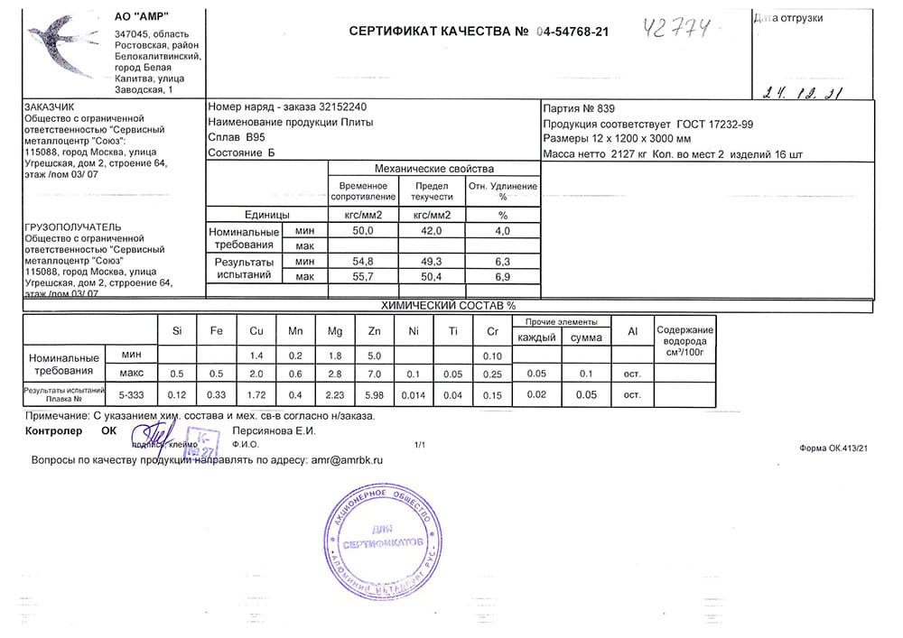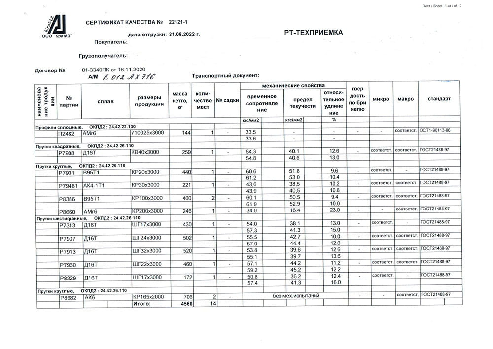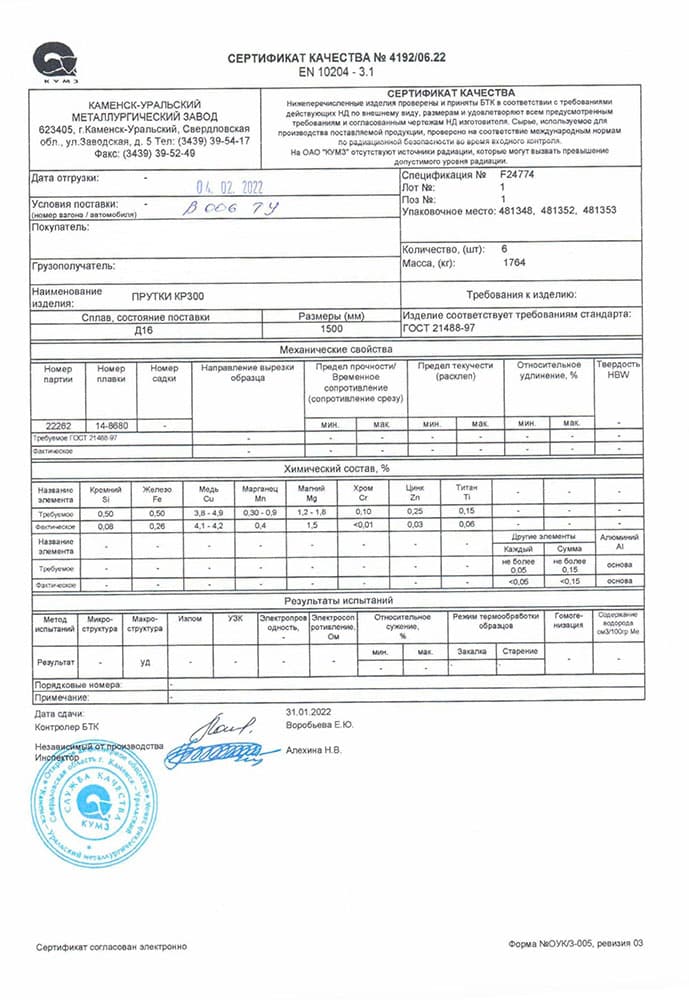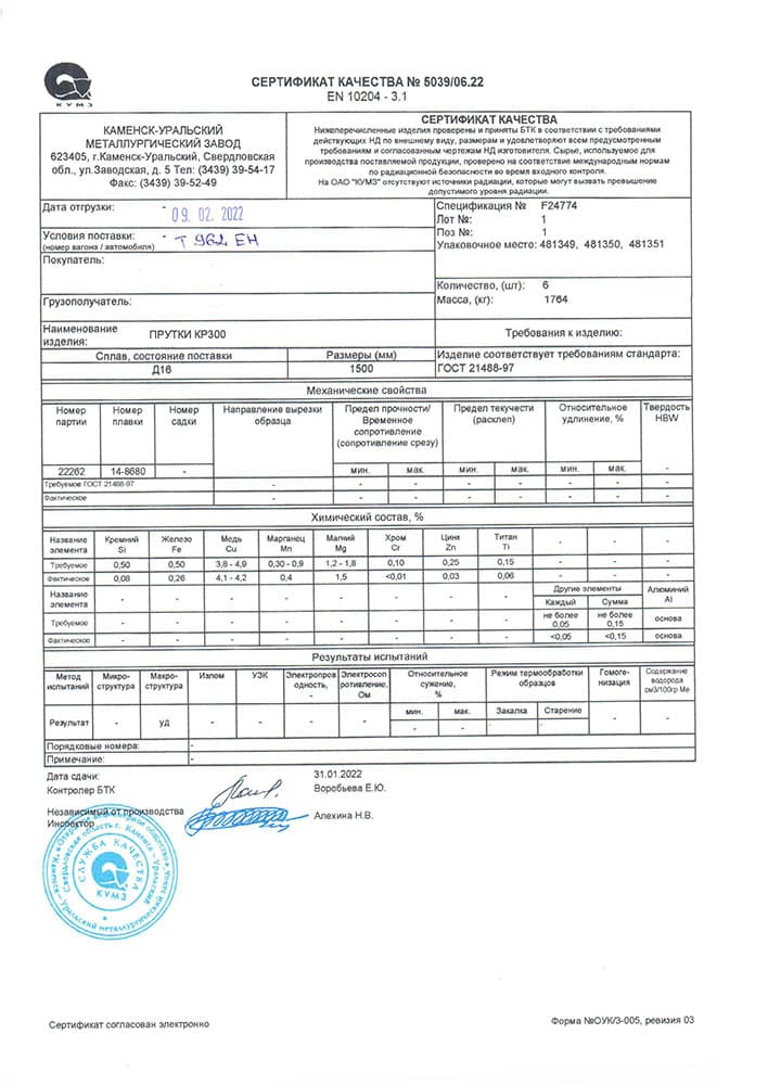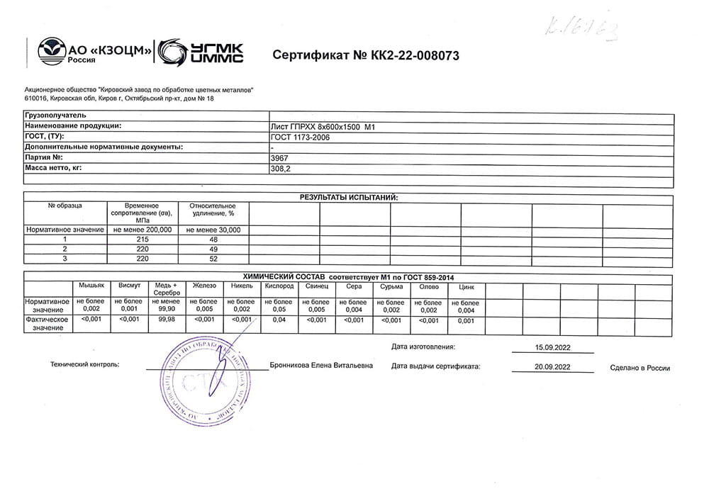 В этом разделе вы можете ознакомится с сертификатами качества на предлагаемый металлопрокат. Вся продукция соответствует регламентам прописанных в ГОСТах или ТУ. Если вы не нашли необходимый сертификат, отправьте нам запрос, любым удобным способом.