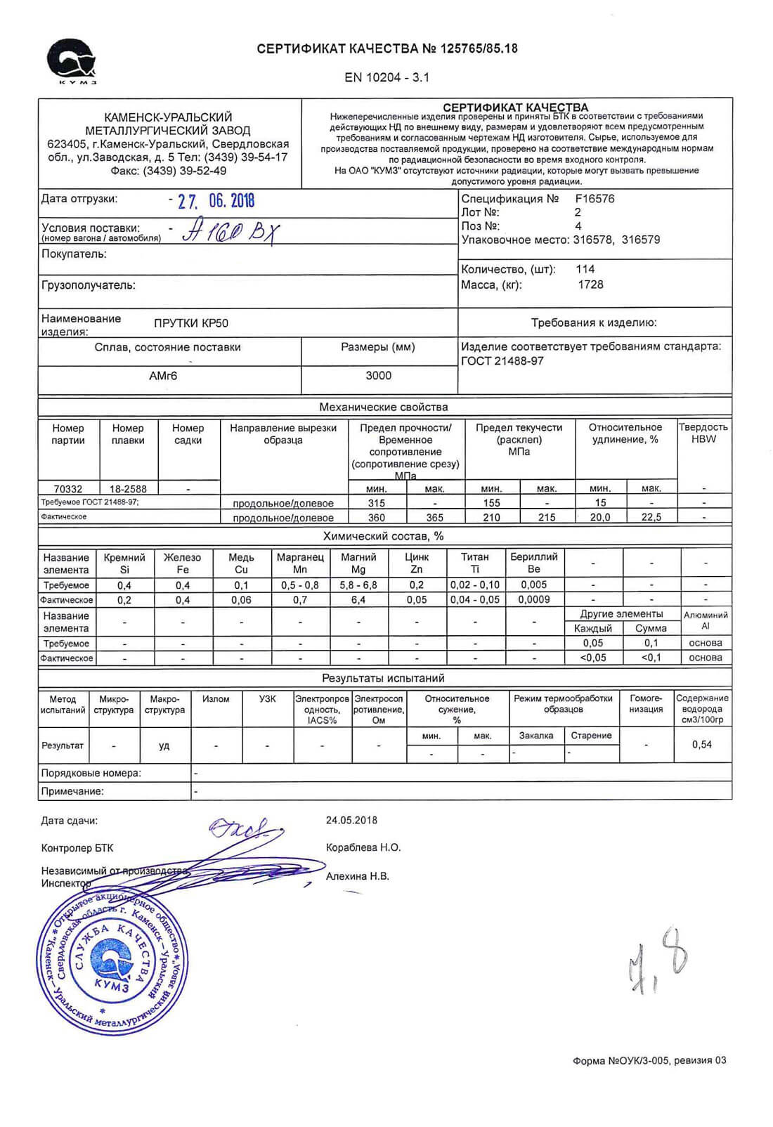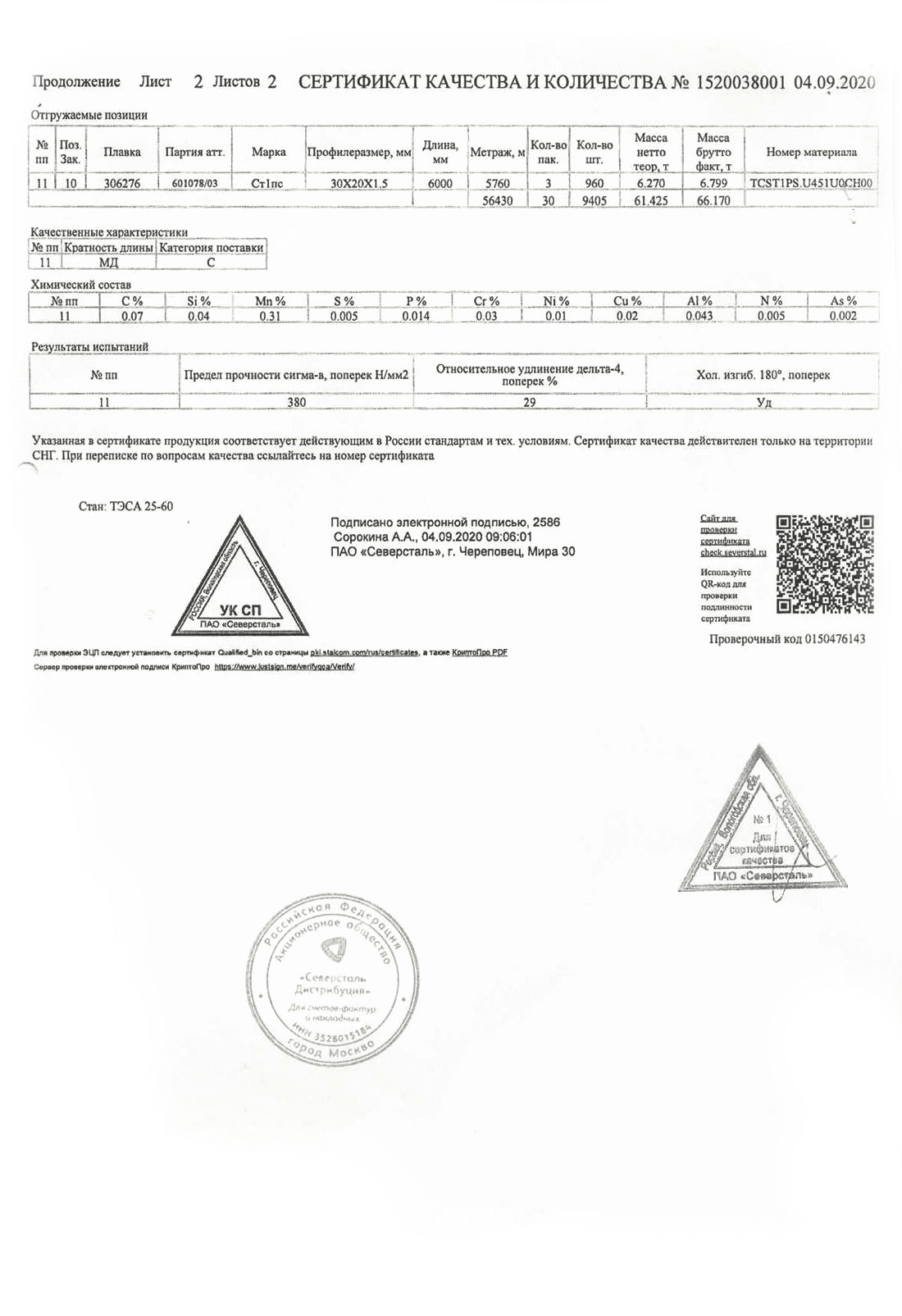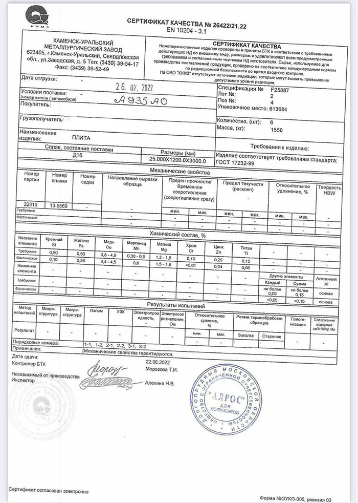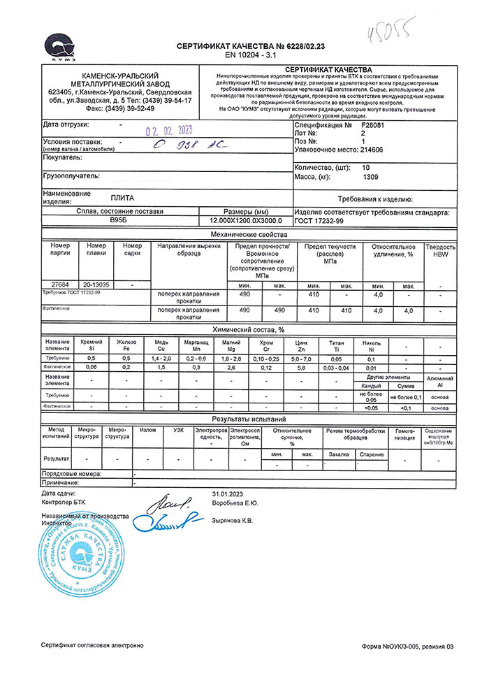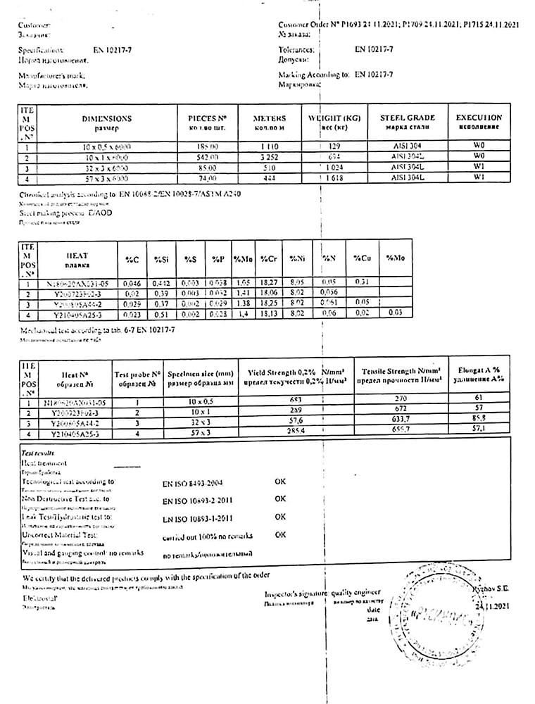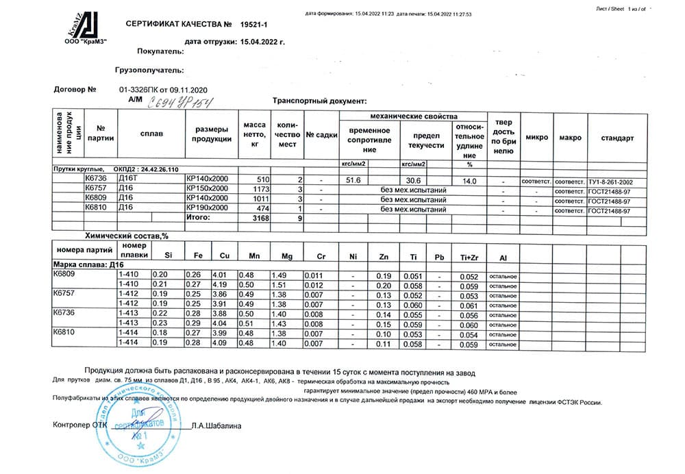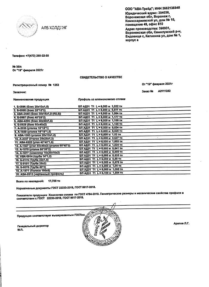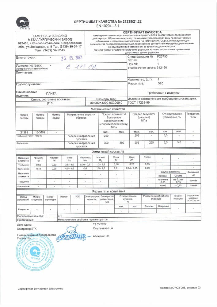 В этом разделе вы можете ознакомится с сертификатами качества на предлагаемый металлопрокат. Вся продукция соответствует регламентам прописанных в ГОСТах или ТУ. Если вы не нашли необходимый сертификат, отправьте нам запрос, любым удобным способом.