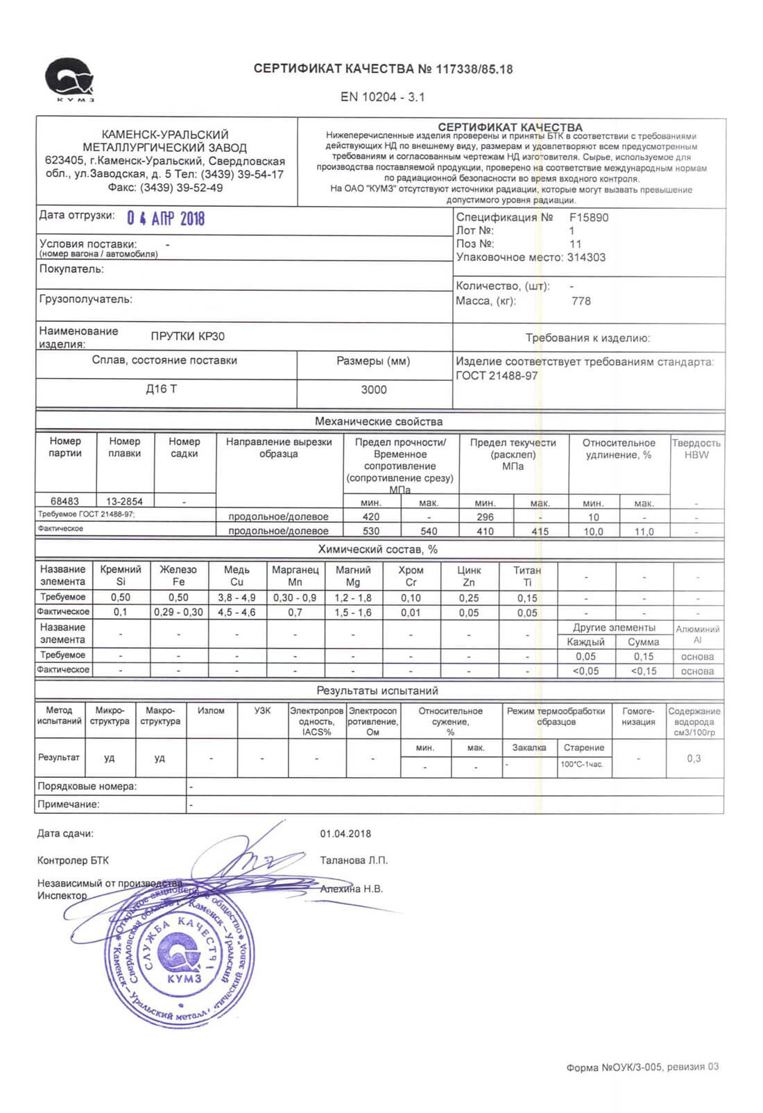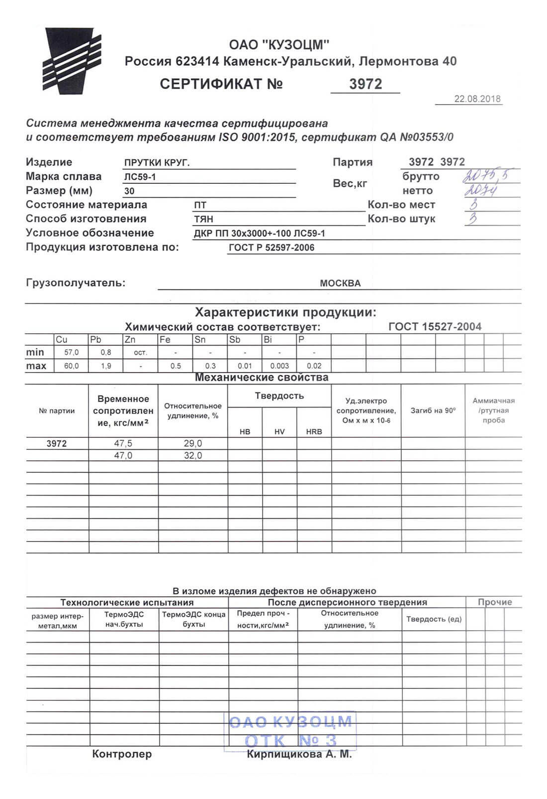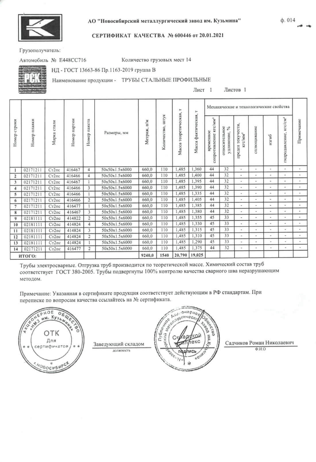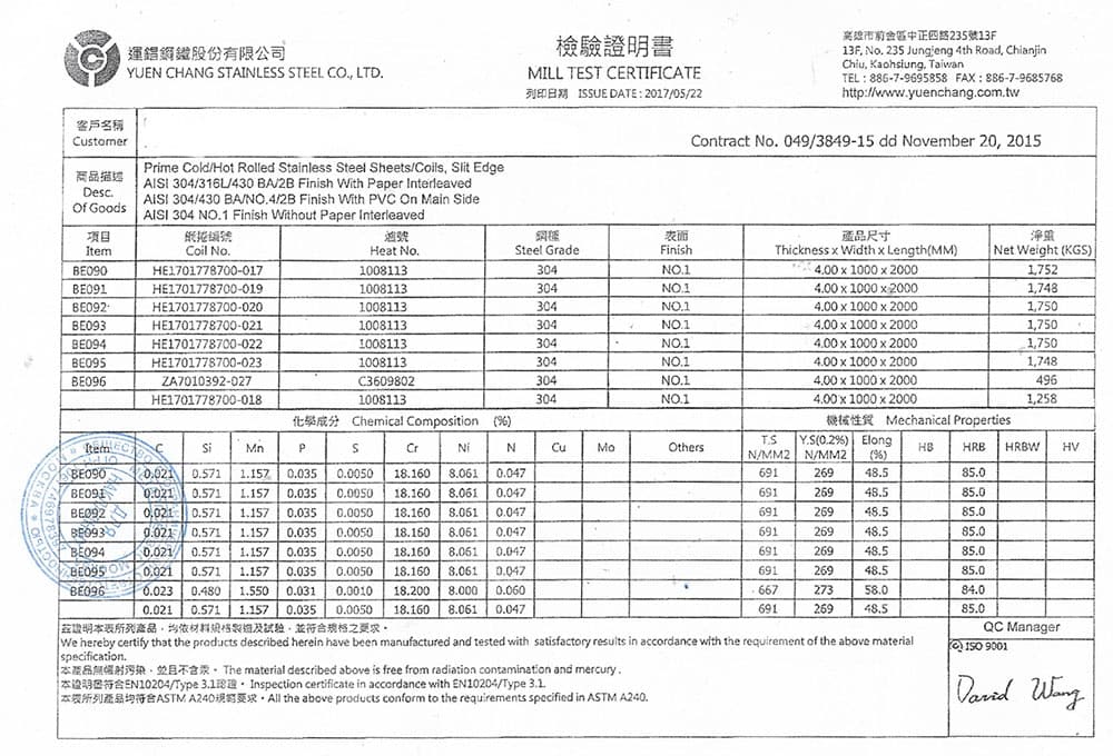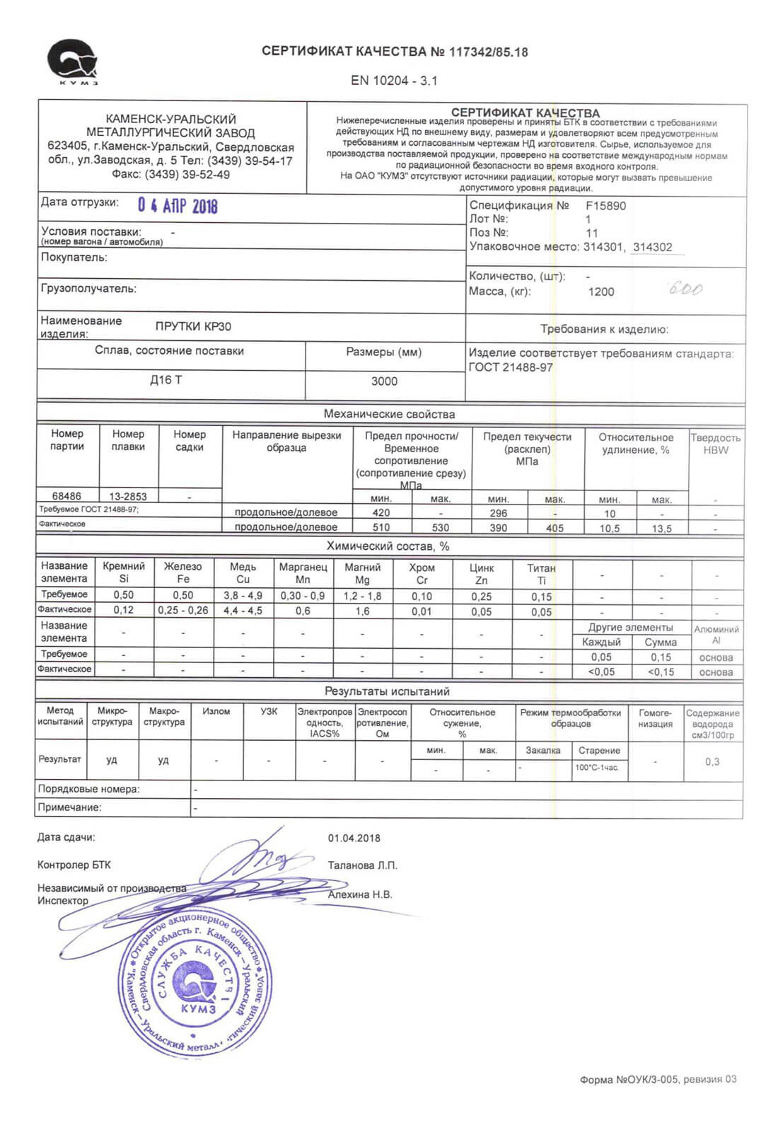 В этом разделе вы можете ознакомится с сертификатами качества на предлагаемый металлопрокат. Вся продукция соответствует регламентам прописанных в ГОСТах или ТУ. Если вы не нашли необходимый сертификат, отправьте нам запрос, любым удобным способом.